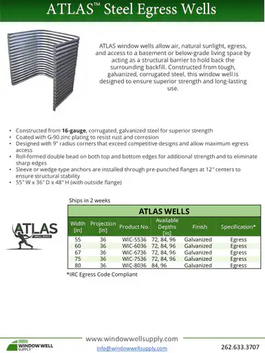 Our Heavy-Duty Atlasโข steel window wells, offered by Window Well Supply, allow light and air to come into your basement, while our steel egress window wells also provide a crucial means of escape in case of emergencies, making your basement a safer place to be. This window well is made out of an 16 gauge steel!