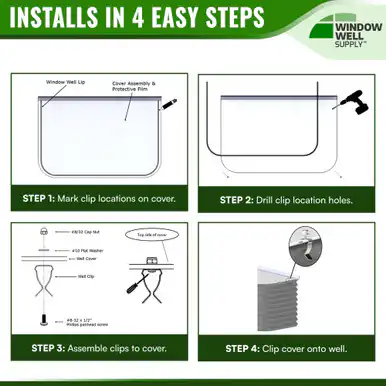 If you have a leaky, cracked, or broken window well cover and do not want to spend a fortune on a window well cover, Window Well Supply is here to supply you with our elongated JCI window well covers. This not only helps to keep objects like debris, leaves, and rainwater out of your window well with its 1-1/2″ built in polycarobate back splash, but also acts as a protective measure to keep you and your family safe.ย