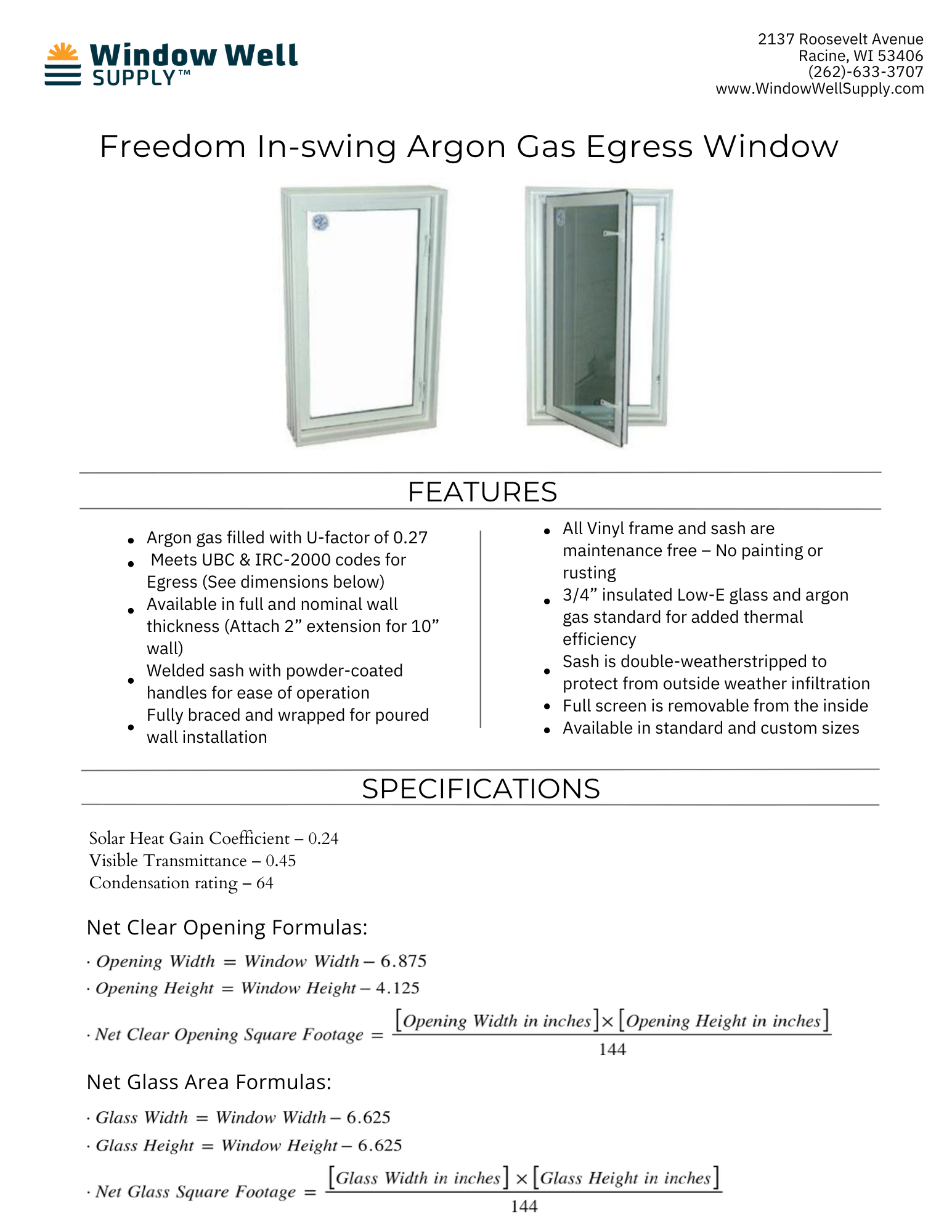 The Freedom In-Swing Casement Egress Window is the perfect blend of safety, style, and energy efficiency for your basement. With Argon gas insulation, Low-E glass, and a maintenance-free vinyl frame, this egress window ensures durability and thermal comfort.