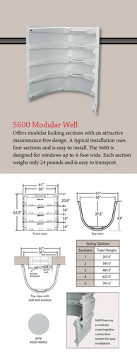 The Wellcraft 5600 Egress Window Well is made to be versatile and customized. Simply stack and snap together multiple sections to create a well height of any size, up to 76-7/8″, with 5 sections. Each 24 lb. section is easy to move and install. These stackable window wells are intended for use with the Egress Windows of up to 4 feet wide. This window well is made of durable, UV-resistant polyethylene that will not crack or rust. Pair the 5600 Egress Window Well with its matching well cover and a sliding window to complete the Window Well egress system which can be used to provide an exit from your basement or crawlspace in case of a fire or other emergency. This basement escape window well offers dependable safety and lasting performance. Order the Wellcraft 5600 today!