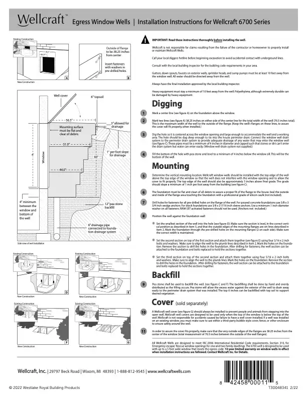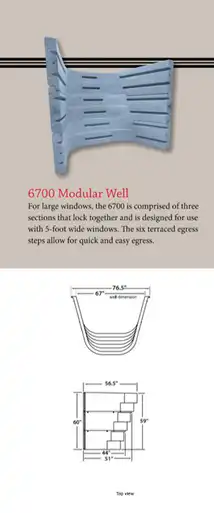 The Wellcraft 6700 Window Well is intended for use with 5 foot wide windows, and includes 3 locking sections that lock and snap together to create a well height of 60″. This window well system, when paired with the matching well cover and sliding window, create a great escape from your basement, while also letting in plenty of sunlight. The Wellcraft Window Well series offers functionality as well as appealing looks and is composed of durable UV-protected polyethylene, enhanced by Window Well Supply expertise.